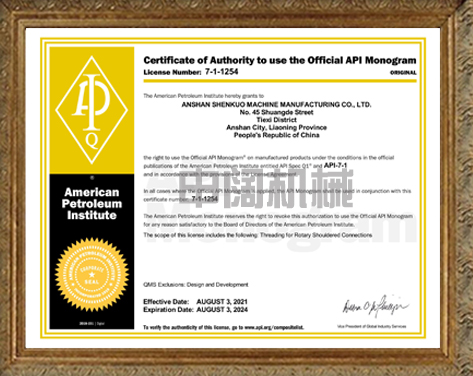 公司于2008年就已通過ISO9001:2008質(zhì)量管理體系認證。2015年通過了美國石油學(xué)會API Spec Q1和API 7-1的質(zhì)量管理體系的認證;又于2016年初通過了ISO14001環(huán)境管理體系和ISO 18001職業(yè)健康安全管理體系的認證。
